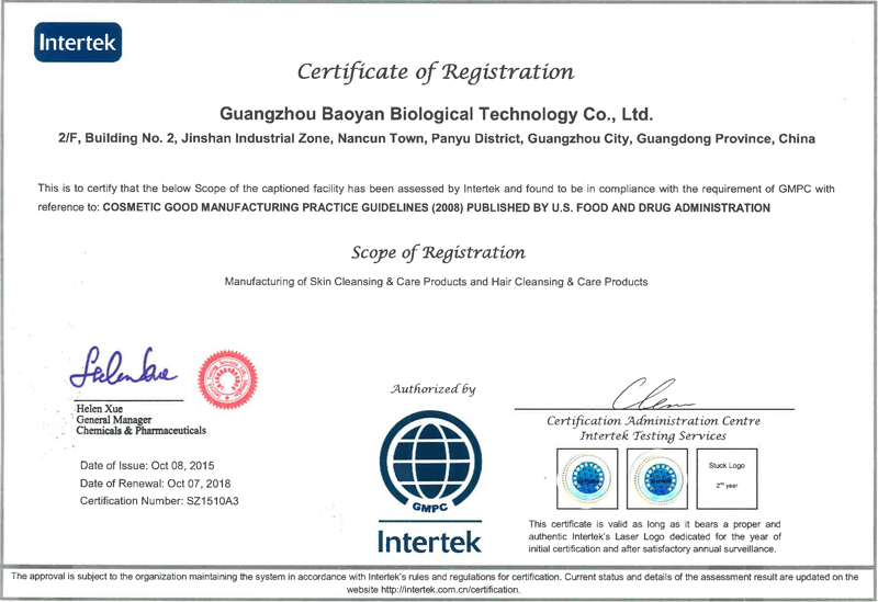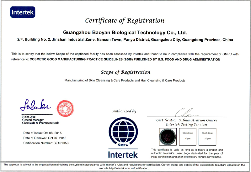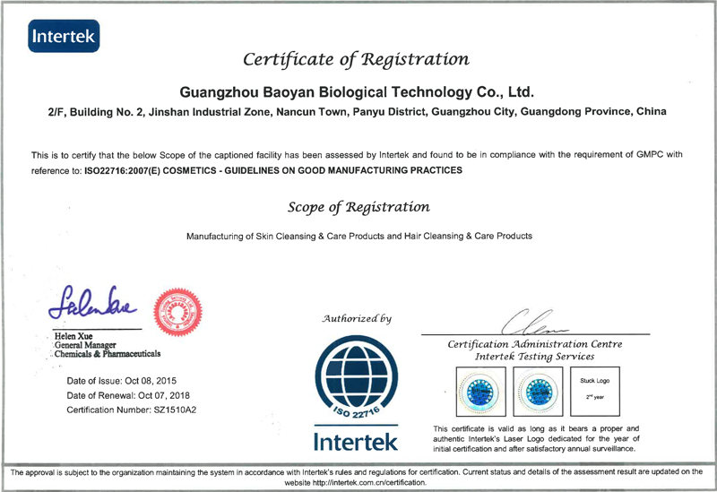 廣州葆妍生物科技有限公司位于廣州番禺金山工業園,成立于2009 年,經營面積20000平方,集化妝品(護膚類、彩妝類)配方開發、生產加工于一體,專業化、規?;幕瘖y品OEM/ODM/OBM企業。 “追求卓越,秉承健康,成就美麗”的經營理念,致力于健康美麗事業。
